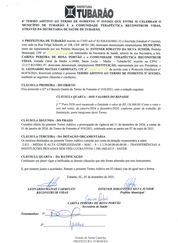 Esse espaço é voltado para divulgação mensal dos balancetes financeiros em parceria com a Prefeitura Municipal de Tubarão e a nossa Comunidade Terapêutica. O intuito é informara a população de forma transparente e ética. Para acessar o termo de fomento clique aqui.